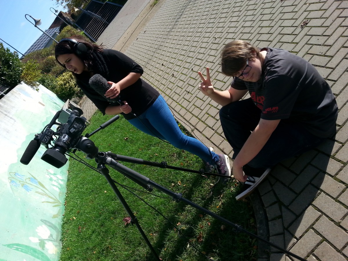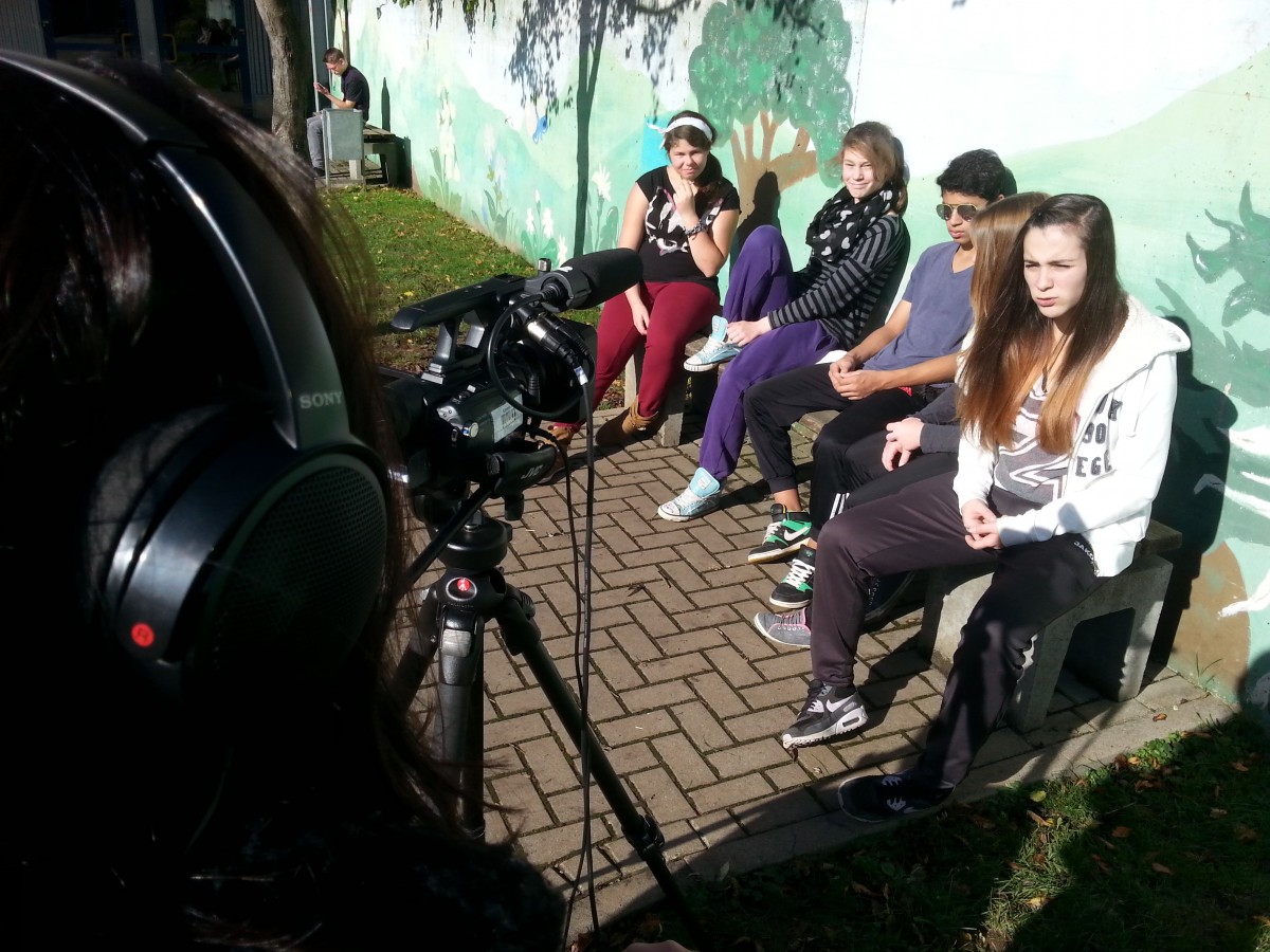 Am nächsten Tag gab es dann eine Einführung in die Technik, Filmsprache und Filmschnitt, um anschließend die eigene Story zu (er-)finden: Im Film bzw. Trailer wird es um einen jungen Nerd gehen, der von einer Gruppe Gleichaltriger gemobbt wird. Die Situation spitzt sich immer weiter zu und in seinem Kopf entstehen verschiedene Lösungsmöglichkeiten für sein Problem…